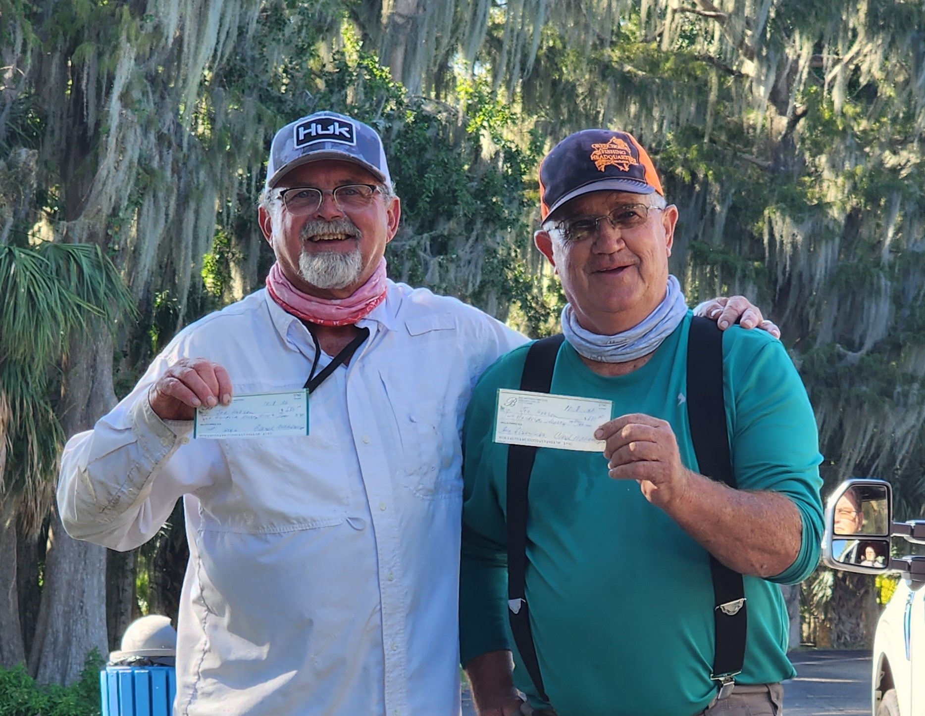 John and Perry Cincota figured out that the bass were chasing bluegill heavily at the Cartwright Realty Harris Hoedown. They switched to black and blue jigs to entice the larger bass to bite. They put together a 20.62 pound bag and took the crown. Second place went to your club president and his wife, Team Mahoney, with 19.75. They pitched and flipped the Kissimmee grass all day with Rodents and Ochos. Third went to Team Crandon as they fished the grass as well. Joe Hobson and Ben Smith brought in the big fish of the day with a 6.77 pound fish. The bite was hot and lots of good fish crossed the scales. Good job everyone.